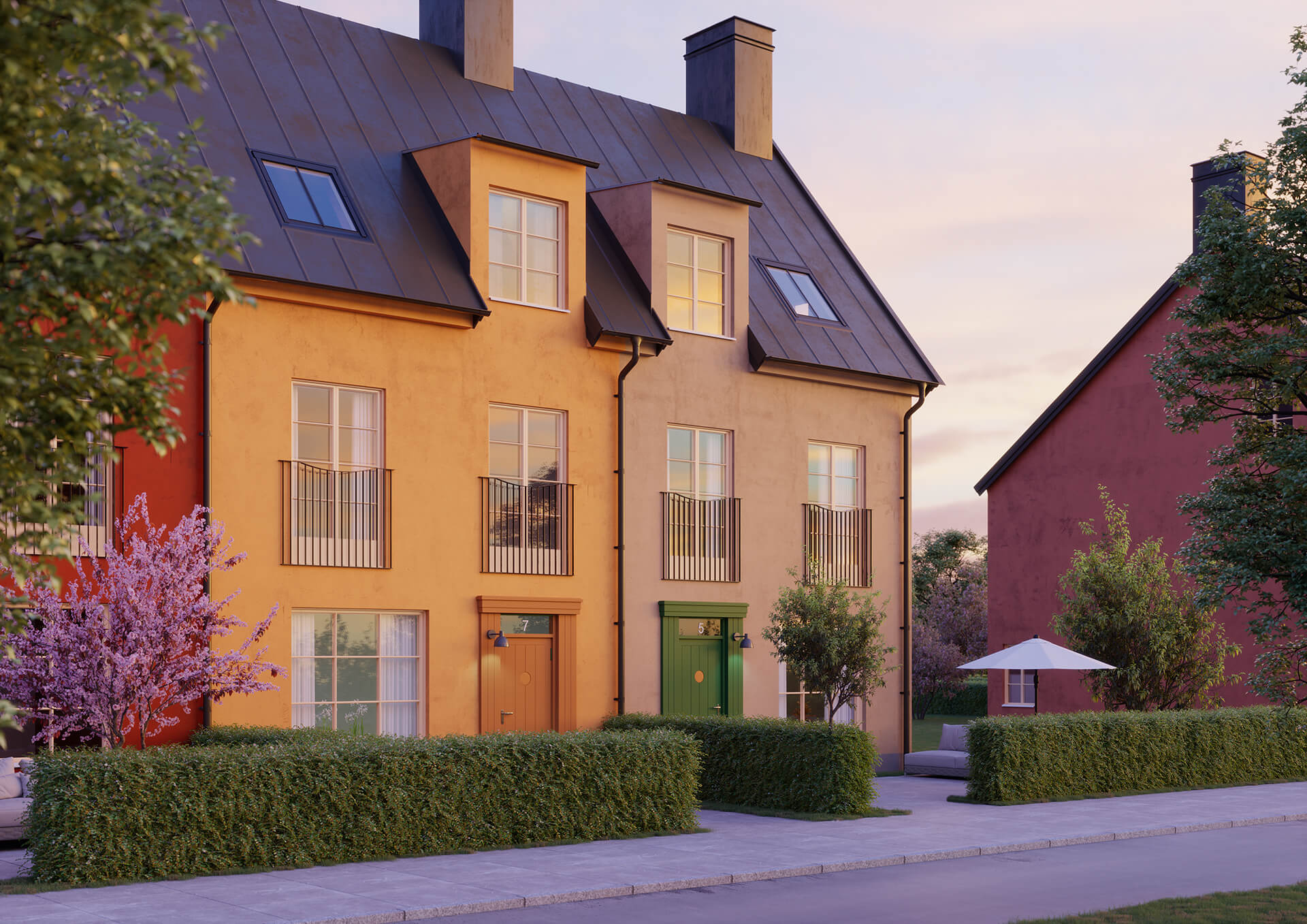 Vi skapar en klassisk trädgårdsstad med en tydlig stil i arkitekturen och många valmöjligheter. Här bor ni i bostadsrätter i form av radhus i 2,5 plan eller i en egen, friliggande villa på en generös tomt.